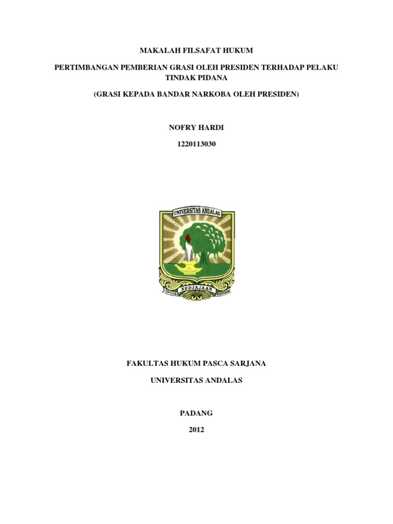 | Judul: Makalah Filsafat Hukum Pertimbangan Pemberian Grasi Presiden Terhadap Pelaku Tindak Pidana |