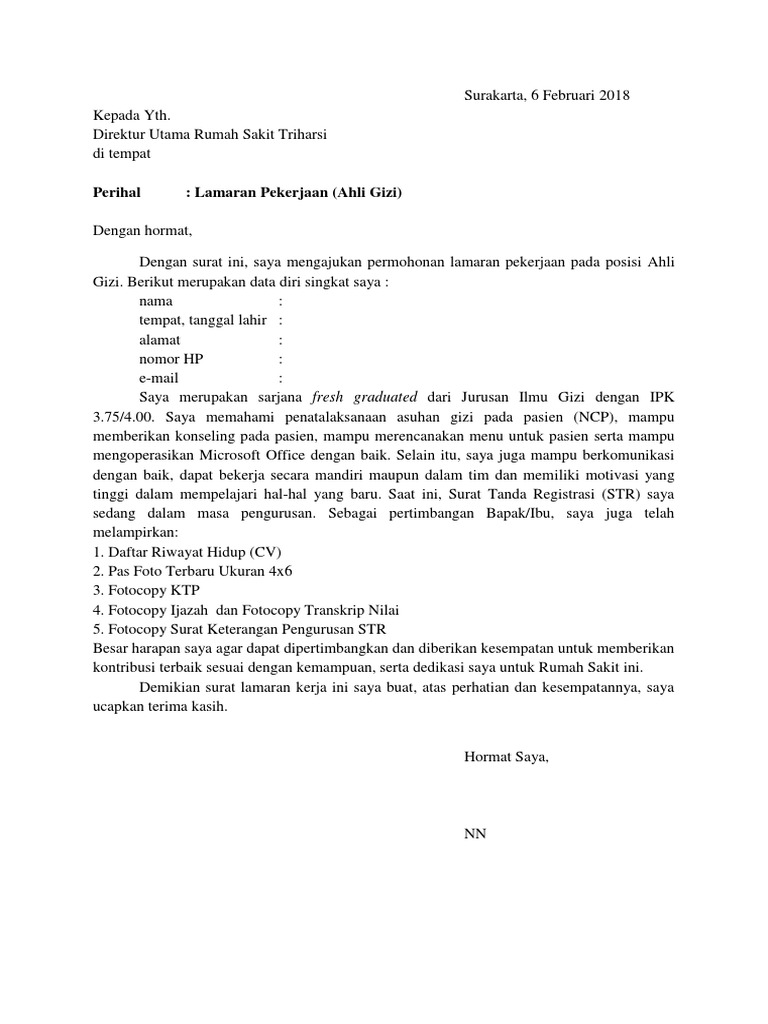 Download Contoh Surat Lamaran Kerja Ahli Gizi Word Pdf